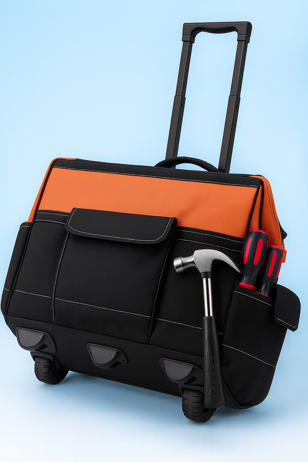 -Heavy-Duty Rolling Tool Bag – 20″ professional-grade tool organizer with rugged wheels and reinforced structure, perfect for construction sites, workshops, and field jobs.