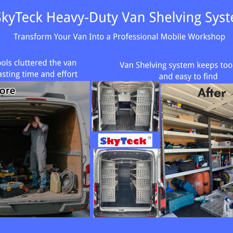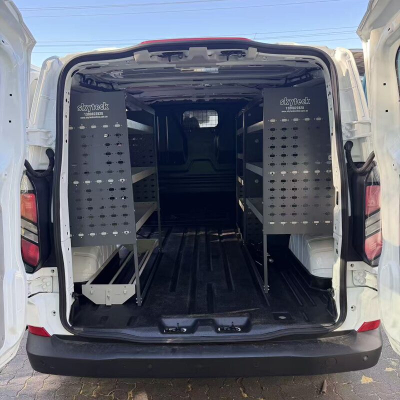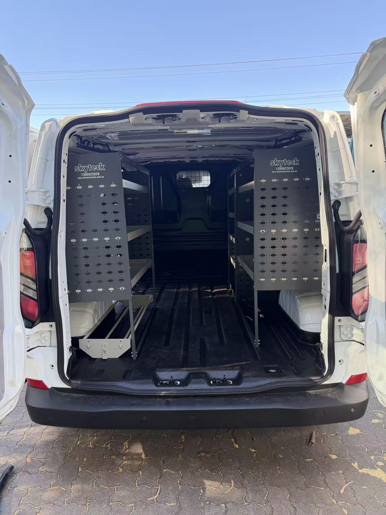 • Smart half- leg design for wheel weel,Innovative half-leg structure bypasses wheel wells, optimizing storage capacity in vans. Perfect for tight spaces without sacrificing storage area. Adjustable heights (33.5/”46”/48”/50”) fit various van roof height. Includes pre-drilled holes and hardware for quick and hassle-free installation.