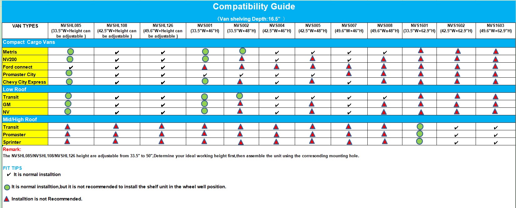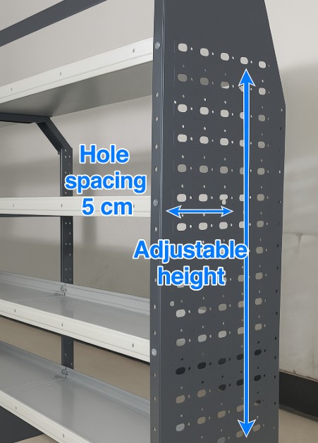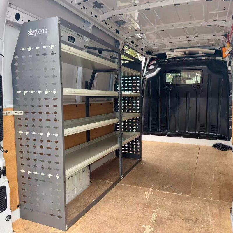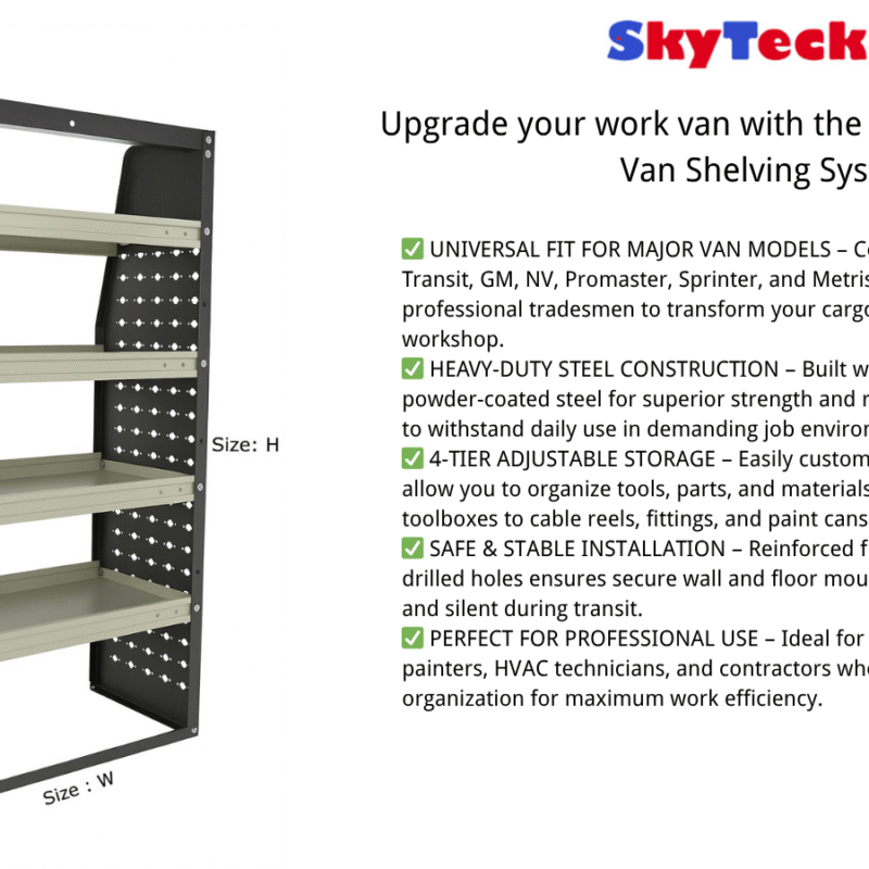 This van shelving is designed to fit major van models, including Transit, GM, NV, Promaster, and Sprinter. Featuring 4 adjustable shelves, it offers flexible storage for tools, equipment, and supplies, making it ideal for contractors,Electricians, painters, HVAC technicians, tradesmen, and other professionals. Made from heavy-duty steel, this rack delivers durability and stability, capable of holding heavy loads while keeping your van organized. The cargo shelving system helps maximize space utilization and improve workflow efficiency. Installation is simple and straightforward, thanks to pre-drilled holes and included hardware. Whether you’re upgrading a commercial van or personal work vehicle, this adjustable shelving unit provides the perfect storage solution for your needs.