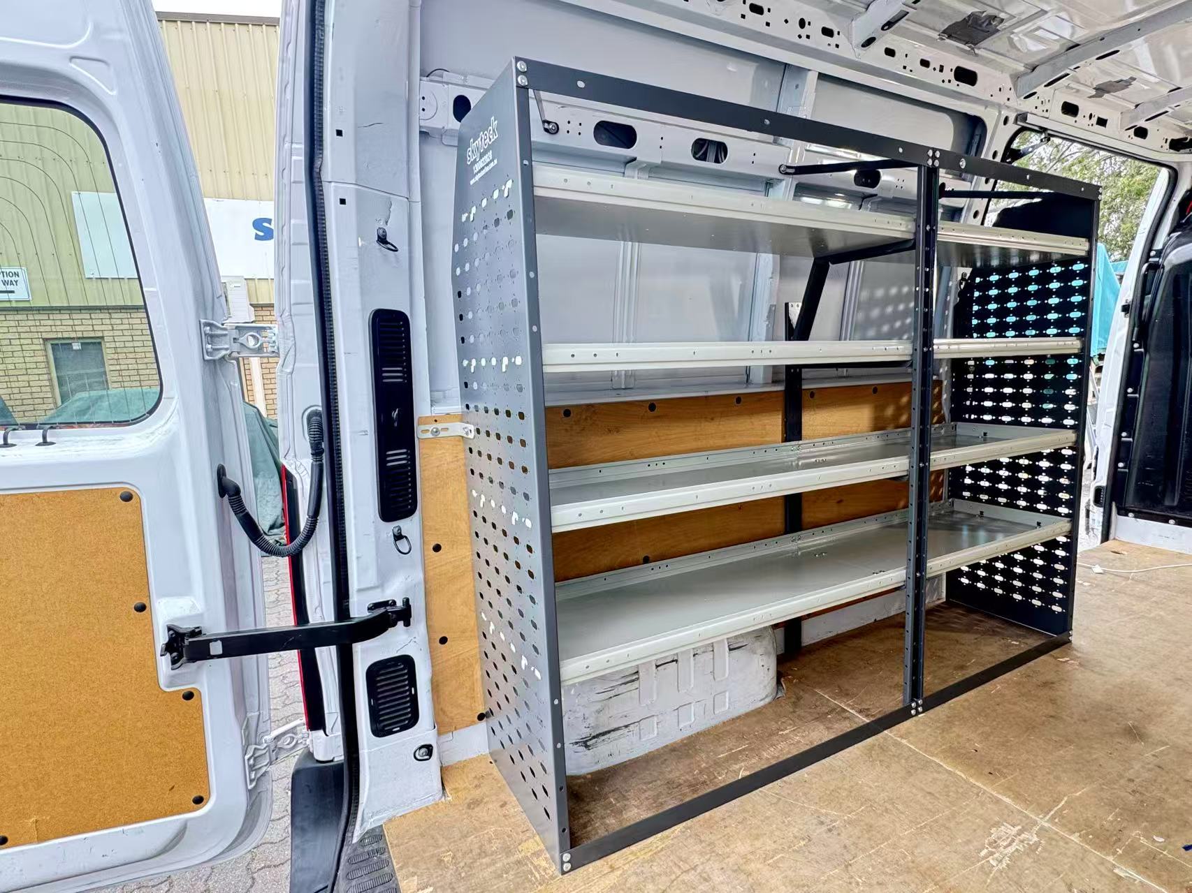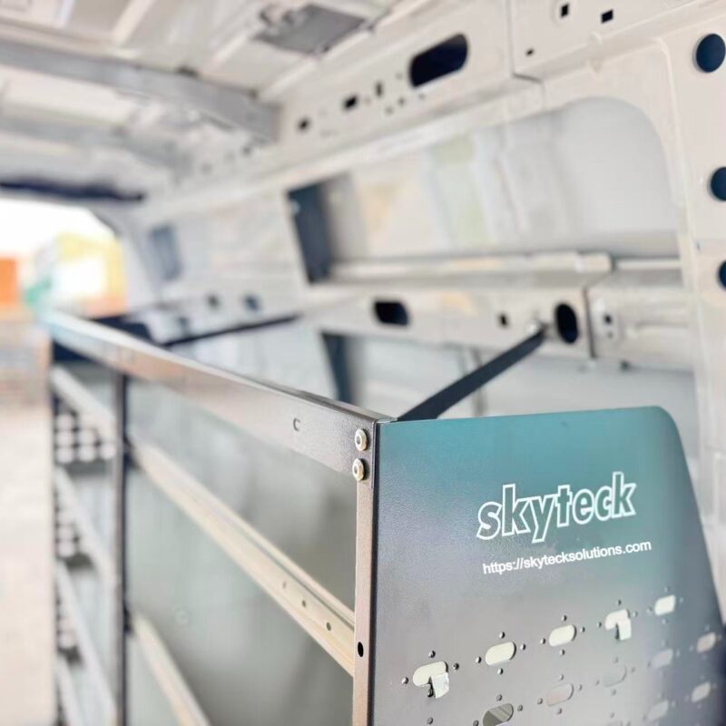 Whether you’re an electrician running cables, a plumber managing fittings, or a contractor organizing equipment, the SkyTeck Shelving System keeps everything in place — even on rough roads.